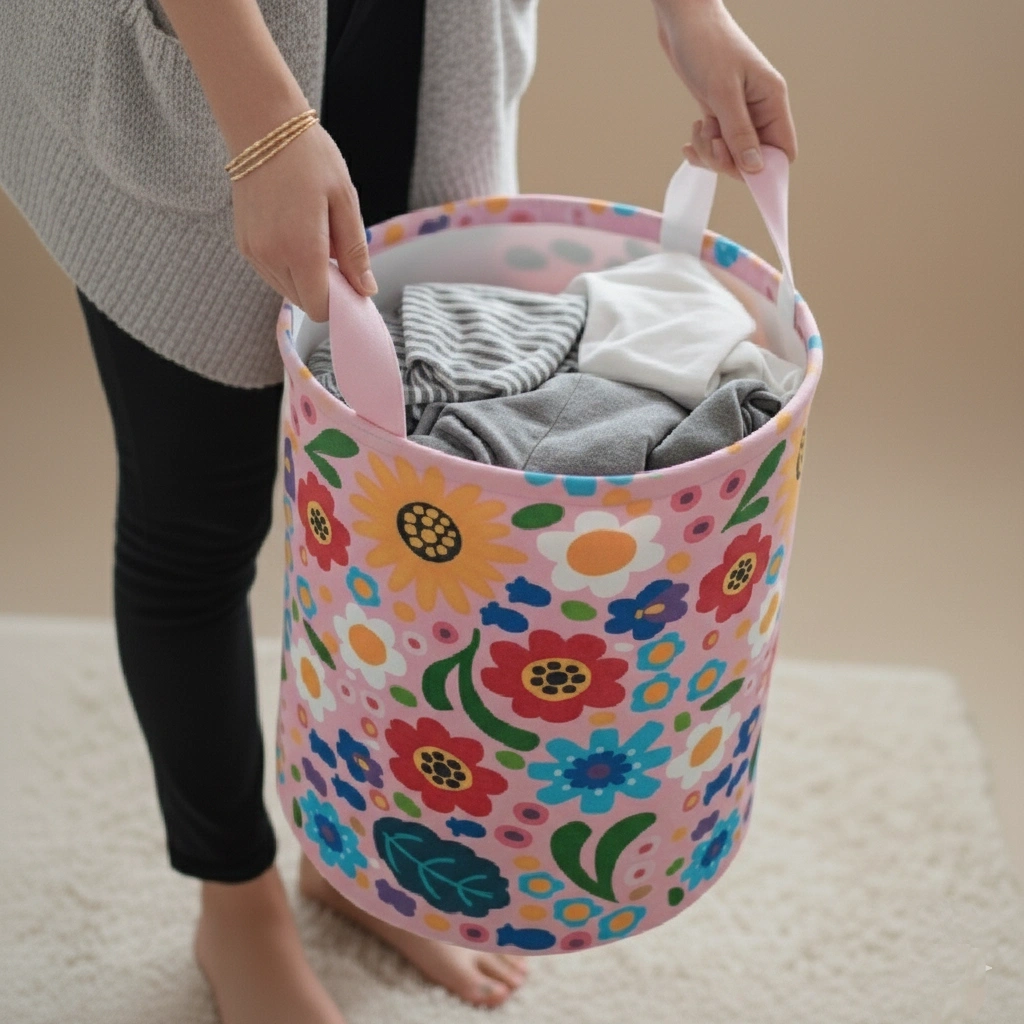 Renkli çiçek desenli bu dekoratif keçe sepet, evinizin her köşesinde düzeni ve şıklığı bir araya getirir. Kıyafet, oyuncak, hobi malzemeleri veya diğer eşyalarınızı saklamak için idealdir.